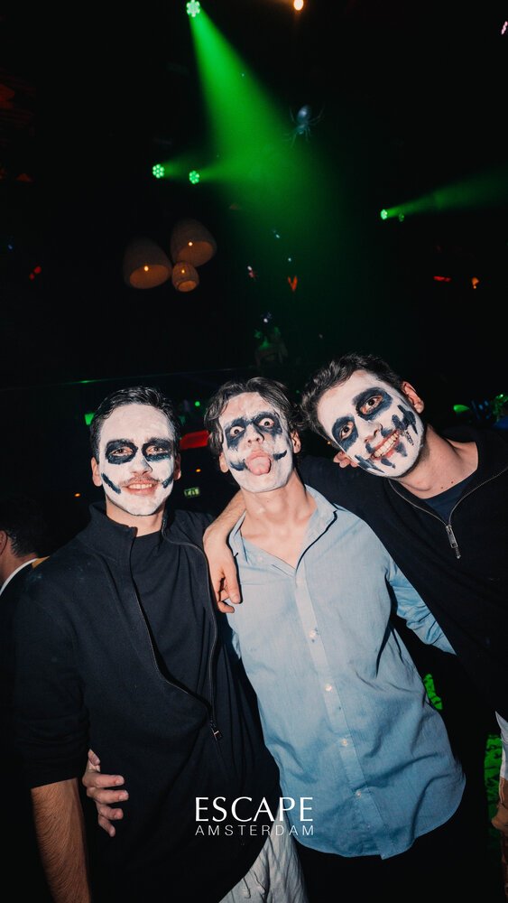 ------------- Raymundo, Marijn Jansen, Lucas Verse, Mc Haits & Delux: Lozado -------------🎃 Halloween at Escape Club! The venue will be transformed into a spooky party zone with thrilling entertainment all night long. The dress code is Halloween — come dressed in a creepy, creative, or original costume to complete the atmosphere! Our makeup artist will be ready to enhance your look — do you dare to come in costume? 👻 No costume, no worries, but be party dressed, you are visiting Amsterdams most popular club 😊